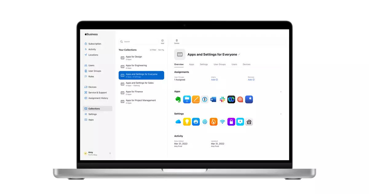 Concrètement, les entreprises peuvent automatiser l’intégration de nouveaux employés. Elles assignent des applications, configurent des accès et déploient des paramètres en quelques clics. Apple introduit également un système de « collections » d’applications adaptées à chaque métier.
