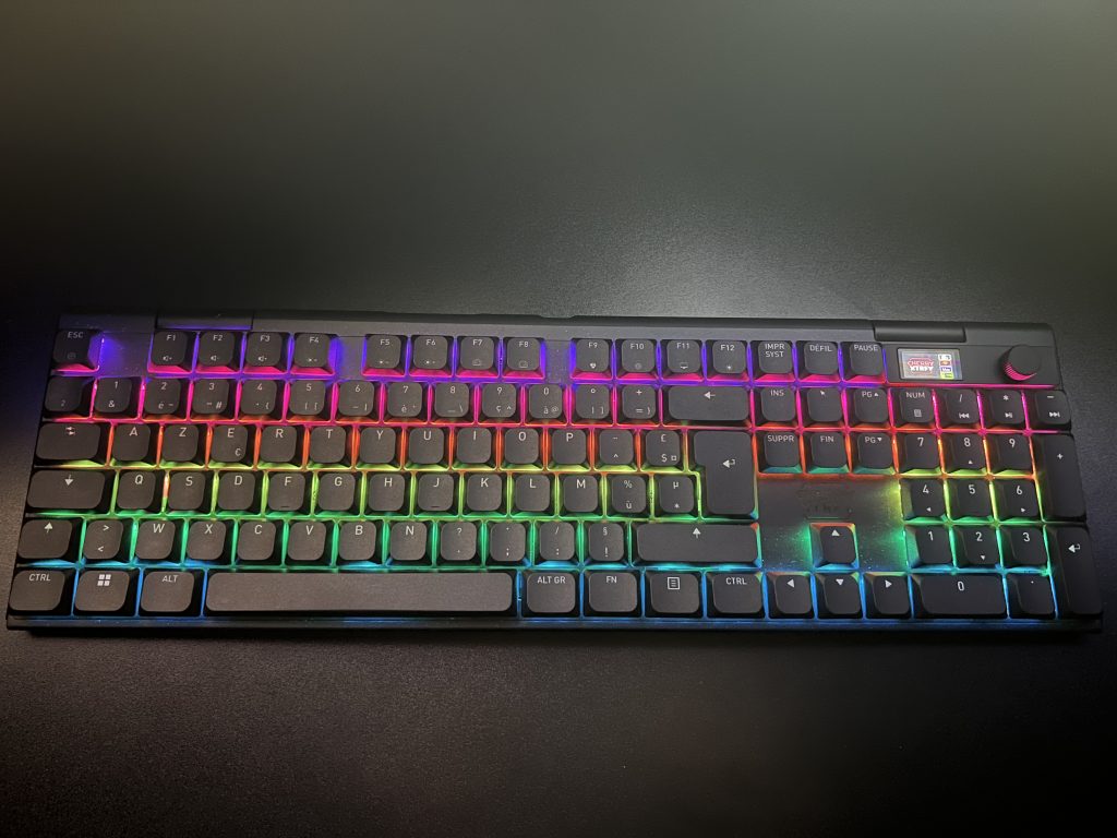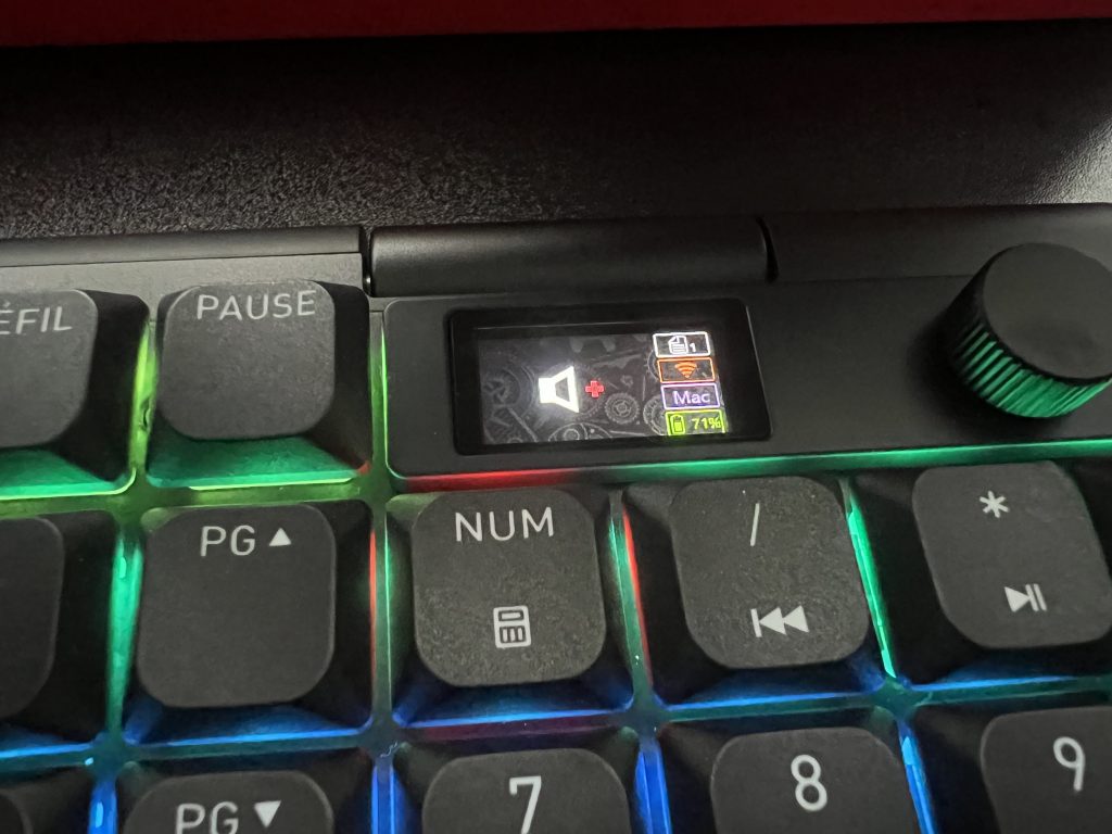 L’écran est l’un des éléments différenciants de ce clavier. Il permet de gérer rapidement plusieurs paramètres, mais surtout d’ajouter une dimension de personnalisation avancée, avec l’affichage d’images et d’informations directement sur le clavier. La réactivité est excellente et l’utilisation intuitive.